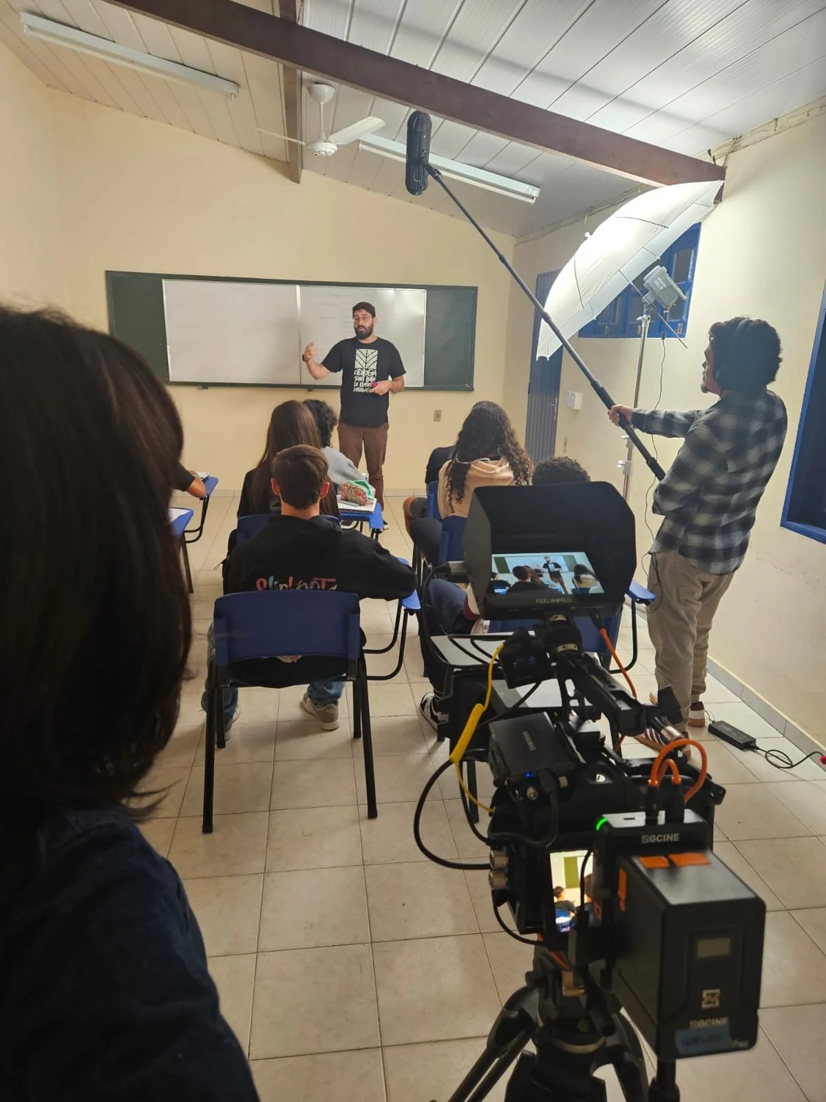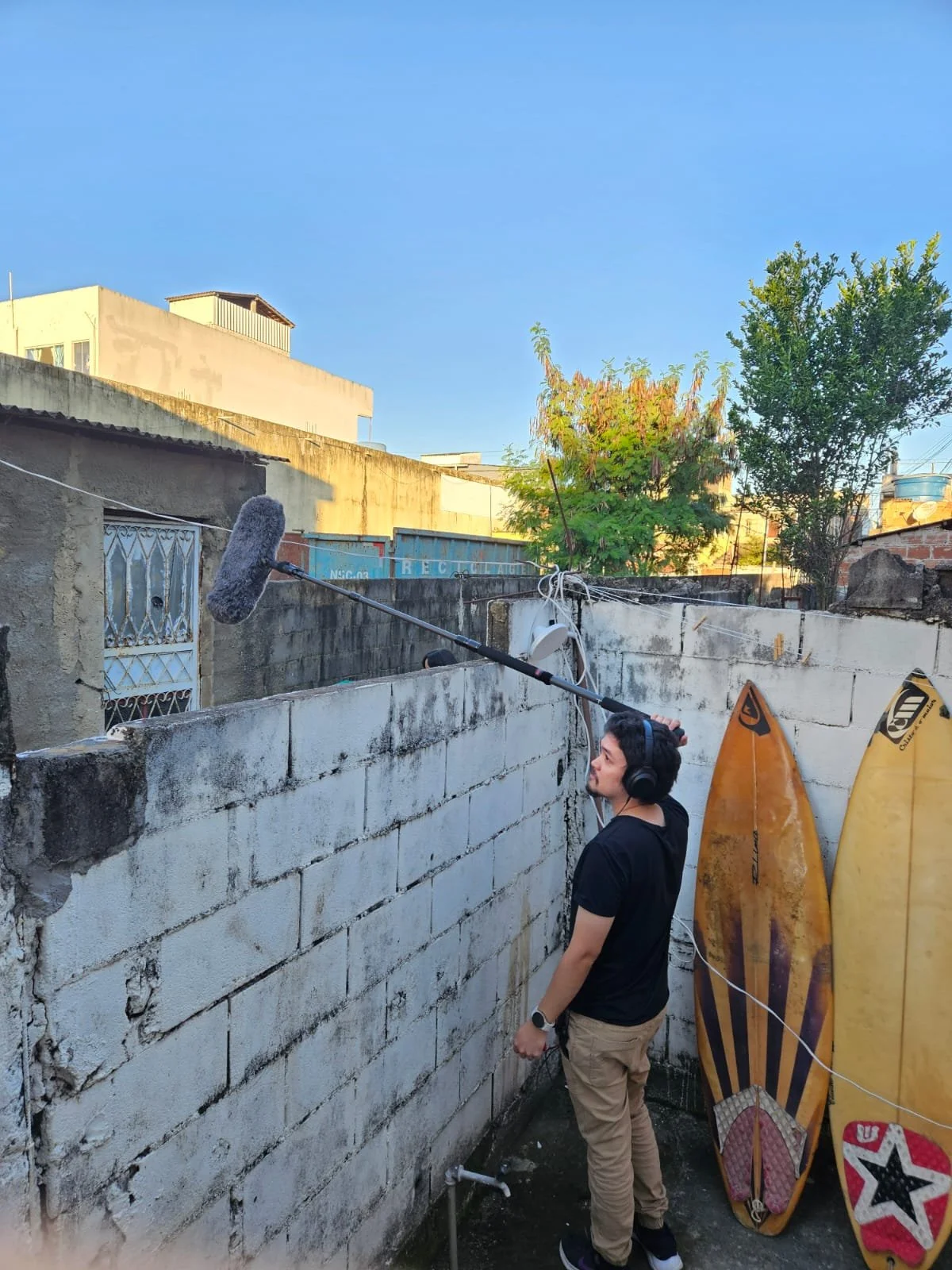 Firstly, for the ‘Azul Petróleo’ project, I followed the directors Tati Yamahata and Gabriel Coelho around the city of Macaé, capturing interviews, vox populi, and city shots. At this stage, my main role was audio recording, but I also helped with lighting setups and provided overall assistance.